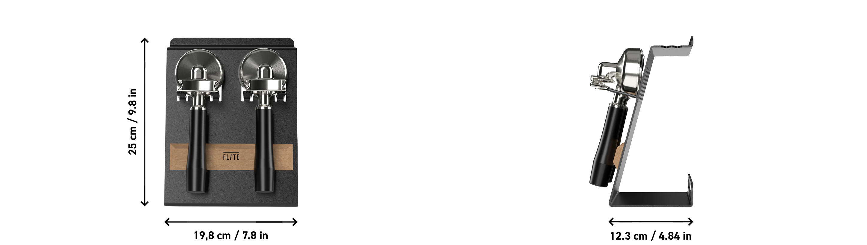 The FLATE® Barista shelf fits all common portafilter and tamper models, such as E61, DeLonghi, GAGGIA, SAGE & BREVILLE, BEZZERA, ROCKET, ECM, ELEKTRA, MARZOCCO, LELIT, PROFITEC, QUICKMILL, RANCILIO and many more.